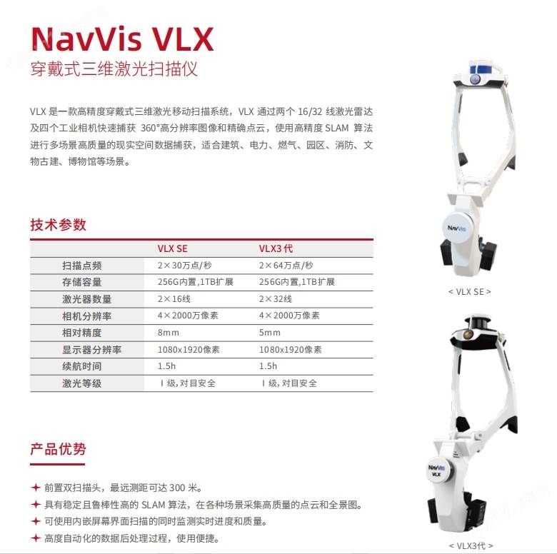 覆盖范围广:配备多个激光雷达传感器或具有广角扫描功能,能够实现、大面积的扫描覆盖,减少扫描盲区,例如 NavVis VLX 3 可实现几乎无障碍的视野,全面覆盖室内和室外环境。